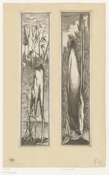 Editor: Here we have "Vier liervogels," or "Four Lyrebirds," a 1934 drawing in pen and ink by Carel Adolph Lion Cachet. It strikes me as both decorative and a little unsettling, like a heraldic emblem from a lost civilization. What do you see in this piece? Curator: That's a fascinating initial reaction. I’m drawn to the repetition, how these birds, almost icons themselves, are arranged. It speaks to a deeper, perhaps unconscious, desire for order, for rhythm in the natural world. What symbols or archetypes do these birds evoke for you? Editor: Well, birds often represent freedom or the soul. But the rigidity here makes them feel more like… symbols *of* freedom, rather than freedom itself, if that makes sense? Curator: Precisely. Consider the lyrebird: known for mimicry. Lion Cachet gives us not just birds, but representations of representations. Does this mirroring dilute or amplify their meaning, would you say? Editor: It definitely adds layers. It makes me think about how easily symbols can be detached from their original context, used for entirely different purposes. Is there something inherently unsettling in that process? Curator: Absolutely. The piece captures this inherent instability, the constant negotiation between original meaning and contemporary interpretation. And the symmetry – it lends a ceremonial quality. What sort of ritual would have these creatures at its heart? Editor: I hadn't considered that. Maybe something about the beauty, but also the fragility, of nature? I feel like I'm only scratching the surface here. Curator: And that, perhaps, is the greatest magic of images – they are never truly "finished," only reinterpreted across time. Each viewer, you included, adds another layer to their ongoing story.