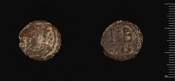 Editor: This is a coin of Justin II from the Harvard Art Museums. It looks quite worn, but I can make out figures on one side and what appears to be a monogram on the other. What can you tell me about the cultural significance of this coin? Curator: Well, coins like these weren't just currency; they were potent tools of imperial propaganda. The imagery, likely depicting Justin II and his consort, and the monogram, symbolized power and divine legitimacy. Editor: So, how did this coin function in the daily lives of people? Curator: Think about it: this small object, circulating widely, constantly reinforced the emperor's authority. It visually linked daily transactions to the imperial center, shaping public perception of power and governance. Editor: That's fascinating! I never considered the political weight of something as commonplace as a coin. Curator: Exactly! It's a reminder that even the smallest objects can be powerful agents in shaping social and political realities.