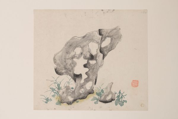 This is a page from the Ten Bamboo Studio Manual of Painting and Calligraphy by Hu Zhengyan, created sometime between 1584 and 1634 using ink and color on paper. The composition presents a stark yet elegant arrangement: a gnarled plum tree, its branches reaching across the picture plane, set against an austere rock. Notice how the artist uses line and form to define these elements, creating a dynamic tension between the organic fluidity of the tree and the static solidity of the rock. The subtle gradations of ink and color lend depth and texture to the image, reflecting the artist’s keen understanding of materiality. The piece acts as a semiotic system, using natural imagery to evoke philosophical ideas of resilience and renewal. The plum blossom, often a symbol of perseverance, and the rock, embodying steadfastness, suggest a discourse on nature’s inherent virtues. Finally, consider how the spatial arrangement challenges traditional notions of perspective. The flatness of the picture plane and the close proximity of the objects invite contemplation on the relationship between art, nature, and the self.