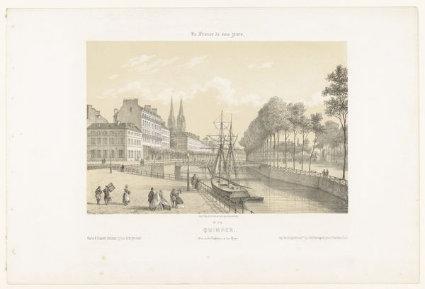 This print shows the Casino Sociëteit in Amsterdam, rendered by the Gebroeders van Lier. The scene is structured along a horizontal axis, bisected by the calm canal waters, emphasizing the solid architecture on the left against the intricate rigging of a ship on the right. The brothers employ a fine, linear technique that details the facades and reflections, creating a rich interplay of light and shadow. This meticulousness destabilizes the clear distinction between the representation and what it signifies, suggesting a world where surfaces and depths continuously negotiate meaning. The composition invites us to consider how architectural forms and social structures interact. Do the detailed lines act as a semiotic code reflecting the rigid social norms of the time? The bridge, subtly placed, acts as a metaphor for connections within the city, drawing attention to how urban spaces facilitate encounters and exchanges. These elements function not merely as aesthetic components but as vital signs within Amsterdam’s cultural landscape.