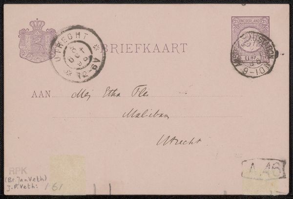 This ‘Briefkaart aan Etha Fles’ was made in the Netherlands by Jan Veth, though the date is not known. It is a simple pre-printed postcard, with the address filled in by the sender. The making of such an everyday object speaks volumes about the development of industrial society. With the rise of mass production, even personal communication became standardized and routinized. Consider the labor involved in producing the paper, printing the card, and distributing it through the postal system. Each step represents a complex network of workers and machines, all contributing to the efficient delivery of a simple message. Even the stamps are an expression of state bureaucracy, made to exacting specifications. By focusing on the material and production processes of this humble postcard, we gain insight into the social and economic forces that shape our daily lives, blurring the boundaries between art, craft, and the everyday.
