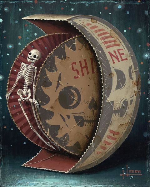 Curator: Jason Limon created this mixed-media piece, "Winning," in 2022. I see so many interesting intersections in the symbolic material! Editor: My first thought is it’s got such a strangely playful vibe, considering we're staring at a contraption of skeletons. This is like a state fair game from beyond the grave! Curator: Exactly! The gambling wheel featuring card suits, skulls where we would normally expect to see numbers or prizes—the darker undercurrent is evident. The whole setup prompts reflection on luck and the inevitable ending we all face. Editor: Oh, absolutely, a dark game indeed. The craftsmanship has this almost childlike quality too. Look at the way the bones are rendered on that support strut, very paste-up, folk-art like… almost makes you want to pull the little lever and see what fate deals. I can practically hear the creaks and groans. Curator: Limon seems to point to the public spectacles throughout history, from the morality plays to modern gaming, reflecting how we constantly frame these large questions around the spectacle of winning and losing, using potent symbolism from folk-art traditions to deliver it. Editor: Totally! And that little skeletal figure desperately holding onto the wheel? It kind of perfectly captures the whole human struggle, you know? Gripping tight to our chances, however slim or rigged they might be. Kinda bleak, but, uh, beautifully bleak. Ironic beauty at its finest, like a bittersweet joke. Curator: In seeing how he layers this rich symbolic meaning, “Winning” reflects on humanity’s longstanding preoccupation with fortune, fate, and the societal performances surrounding the act. Editor: Right, Limon serves up death and chance with a wink. Definitely makes you think. The execution is masterfully mischievous. I won't look at a Vegas slot machine the same way ever again.