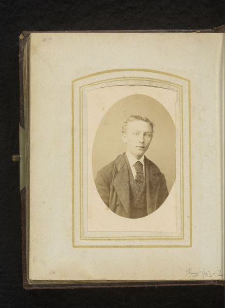 Bernardus Bruining, a Dutch photographer, made this portrait sometime in the late nineteenth century. The photograph is of a young man, smartly dressed in a suit and tie and set within an oval frame in an album. Consider the rise of photography at this time. Photography democratized portraiture, making images accessible to a wider public beyond the elite who could afford painted portraits. Photo albums became a way to curate personal and familial narratives. This image speaks to middle-class aspirations and the desire for social visibility. The subject’s clothing, pose, and the very act of commissioning a portrait suggest an engagement with bourgeois norms. The institutions of art and photography played a role in shaping social identities and cultural values. By studying photographs like this, alongside other historical documents such as personal letters, newspapers, and institutional records, we gain insight into the social conditions and cultural values that shaped the lives of people in the Netherlands during this period.