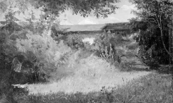 Curator: Dankvart Dreyer created this oil painting, "Bog on a Wooded Islet", in 1838. It's currently held at the SMK, the Statens Museum for Kunst. Editor: Right off the bat, I’m struck by the stillness. It feels quiet, introspective… almost monochrome despite likely using subtle gradations in the actual colors, a really intimate and melancholic landscape. Curator: Introspective is a great word for it. Looking at the composition, you see how Dreyer guides your eye. The placement of the trees creates a structural barrier in the center of the scene, yet simultaneously invites us to peer into the misty distance beyond. What about that invites this introspective state? Editor: Well, the contrast. Dreyer balances realism with a Romantic sensibility—look at how carefully he renders the foreground details: blades of grass, reflections in the bog. There’s so much realism that invites closer observation. Yet, everything fades, becomes hazier. Curator: Exactly. Dreyer is masterfully playing with tonal variations. And his technique in the brushstrokes, especially within the foliage, creates that sense of quiet motion, a breath of life. Do you pick up any interesting symbolism? Editor: I suppose the bog itself, this kind of in-between space, could be symbolic. Not quite land, not quite water, reflecting both sky and earth, speaking to some liminal, transitional phase... Curator: Perhaps reflecting the inner, emotional state too? Dreyer isn't simply recording a place; he's conveying an experience of being in that place, contemplating one’s existence maybe. What do you think? Editor: I do agree. Seeing the real mixed with his particular sensibilities gives this image so much dimension and feeling that it has really stayed with me. Curator: And it really gives such a unique feeling and insight. Thanks for being a part of this moment and really sharing such keen feelings and observations with everyone listening.