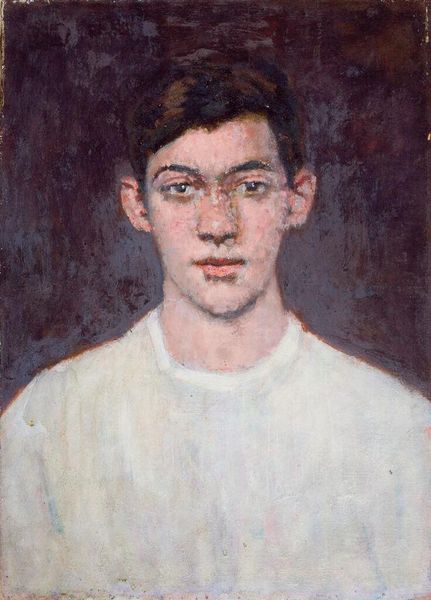 Editor: Here we have Denman Waldo Ross's "Portrait of a Young Man in a White Shirt." It is oil on canvas. The way he’s presented feels very straightforward. What story do you think this portrait is telling? Curator: Well, the institutional context of this work is intriguing. Ross, a prominent Harvard professor, was deeply involved in shaping art education. What role do you think portraits like this played in academic art circles? Editor: Possibly to show off their skill? Curator: Precisely. This portrait could be seen as a statement of artistic principles, demonstrating Ross's understanding of form and color, influencing the artistic values of his students and the broader public’s perception of art. Editor: I never considered its educational role before. It is more than just a portrait of a young man. Curator: Indeed. By understanding these layers, we see how art reflects cultural values and shapes our understanding of the world.
