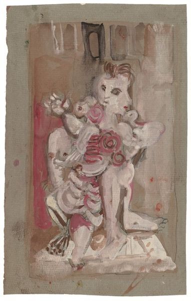 Curator: What a haunting, tender piece! There's such an immediate feeling of melancholy. Editor: Indeed. What you’re responding to is Olga Boznanska’s 1925 oil-on-canvas painting, "Study of the Artist’s Dog." At first glance, the visible strokes composing a figure can evoke complex emotional textures. Curator: Those shadowy eyes, framed by such vulnerable ears. You know, dogs often appear in art as symbols of loyalty and fidelity, tracing all the way back to antiquity. Is Boznanska working with, or perhaps even against, that cultural symbolism here? The crimson splatters behind its head -- almost floral, or perhaps suggesting violence?-- lend this piece a quality that I see as raw, vulnerable...tragic, almost. Editor: Boznanska's own life was marked by significant emotional hardship and trauma from wars. In this study, one gets a distinct sense of transience; it seems less concerned with straightforward representation, perhaps more with an exploration of fleeting emotions, and also a visual representation of grief, or even alienation, in a quickly changing world. Even those quick impasto strokes work against easy notions of stability. Curator: You see how that impasto—the visible brushstrokes and texture of the paint itself— lends such immediacy. Those weren't choices made lightly. Editor: I completely agree. It disrupts established hierarchies of artistic merit; instead of prioritizing hyperrealism as valued in male dominated circles, the visible process pushes beyond any desire for the dog to exist outside the context of Boznanska's touch, the human experience. It underscores her vision, her agency as an artist resisting societal conventions that may dictate she focus on a "worthy" subject matter. Curator: Absolutely. Art becomes a container, really a site for processing inner worlds. What better vessel for our projections than a beloved dog, caught with only just a few strokes, still very recognizable? Editor: On that note, it definitely inspires us to question normative social values and consider perspectives from the margins, don't you think? I keep seeing the artist and her circumstances within those expressive eyes of this very, very good dog. Curator: Yes. Thank you for drawing attention to the profound interconnectedness this one small "study" contains.