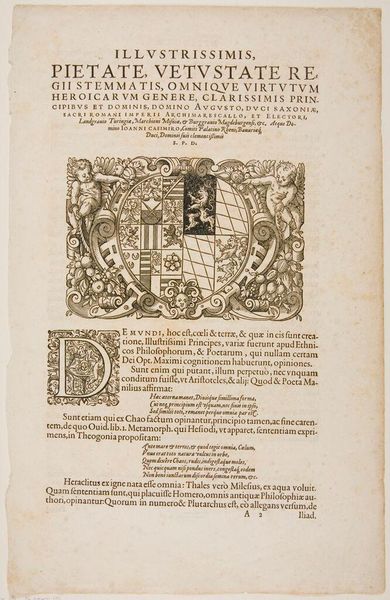 Curator: Let's look at this engraving, "Claude Davost for Et. Guynard," by an anonymous artist. It’s held in the collections of the Harvard Art Museums. Editor: Immediately, I’m struck by the dual scene. One is a formal procession, almost ceremonial, while the other seems more intimate, domestic even. A juxtaposition, perhaps? Curator: Precisely. We see two distinct episodes, likely illustrating a narrative from classical literature, surrounded by intricate borders and text, all typical of early printed books. Editor: The imagery is quite strong for such a small work. The figures, though simple, are full of expressive gestures. Are they meant to convey specific emotions or roles? Curator: Absolutely. The procession likely depicts a Bacchic ritual, hinted at by the laurel wreaths and flowing garments, while the interior scene may show a moment of reflection or decision within that narrative. The symbols are densely packed within the frame. Editor: The text also seems to play a significant role. The composition reflects, and enhances, the importance of both image and language. I can see the text providing some of the cultural context to the imagery. Curator: Indeed. It invites an audience into this historical moment of interpreting classical stories. Editor: Seeing them side by side really gives a sense of the era's visual language and how narratives were conveyed. Curator: Yes, it’s a fascinating encapsulation of cultural values and storytelling traditions.