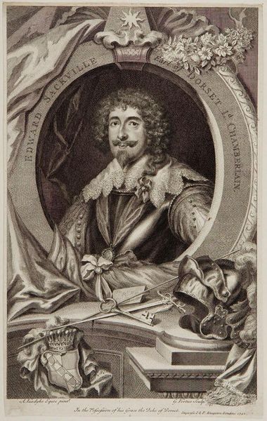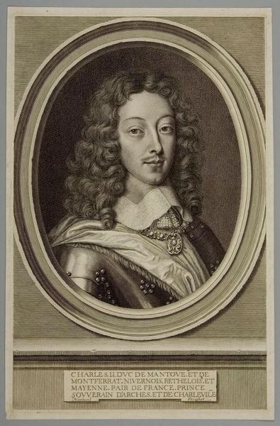 Curator: This is Robert Nanteuil’s portrait of Maréchal Jean-Baptiste Budes, Comte de Guébriant. Editor: It’s striking how the textures and materials are rendered – the armour, the lace collar, even the sitter's hair. It has a real tactile quality. Curator: Nanteuil was a master of engraving, transforming the copper plate through careful tooling. His prints were highly valued objects in their time. Editor: These prints circulated widely, shaping public perception of important figures. Think about how this image would solidify the Comte's status and power. Curator: Absolutely, and consider the labor involved in creating each impression. It collapses distinctions between fine art and craft production, really. Editor: Yes, these images become political objects themselves, influencing social hierarchies. Curator: I’m drawn to the way Nanteuil’s technical skills elevated the print to an art form, even today. Editor: For me, it's how artworks like these mediate power, reflecting and shaping their historical moment.