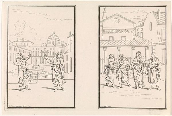 Bernard Picart etched this scene from Terentius's "Adelphoe," likely in 1726, capturing a moment of high drama. The characters, dressed in togas, gesture emphatically, their raised hands speaking volumes. Consider this gesture—the open palm, the raised arm. It echoes across millennia, from ancient Roman oratory to Renaissance depictions of saints and prophets, each using the hand to convey authority, supplication, or divine inspiration. We see it even today, stripped of its original context, in political rallies or theatrical performances. Yet, the meaning shifts. In Rome, it was a sign of civic engagement; in religious art, a conduit for grace. Here, in Picart's etching, it’s a tool of comedy, perhaps mocking the very traditions it invokes. The emotional intensity, however, remains potent, engaging our subconscious understanding of power and communication. This is the life of the image—not a linear progression, but a cyclical return, each era imbuing old forms with new significance, revealing the enduring power of visual symbols.