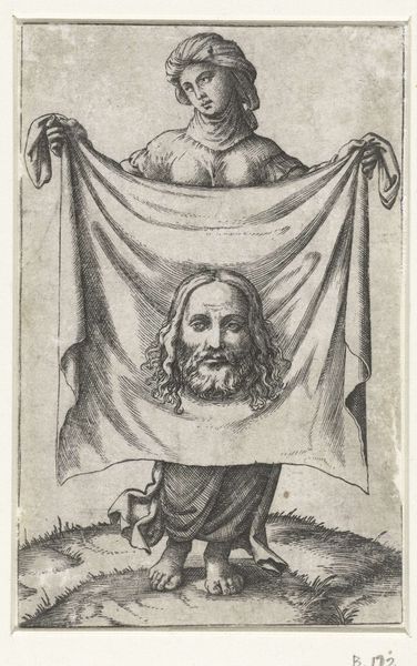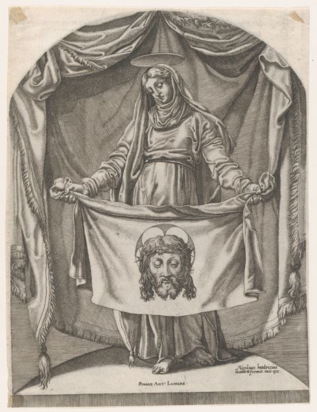 Martin Schongauer rendered this engraving of Saint Veronica and the Holy Face in the late fifteenth century. Veronica holds the sudarium, the cloth with which she wiped the face of Christ on his way to Calvary, miraculously imprinted with his features. This image of the Holy Face is itself a potent symbol. The vera icon, the 'true image,' connects us to the power of authentic representation. This concept stretches back to ancient depictions of rulers and gods, each carrying an inherent authority. In Christian tradition, the Mandylion of Edessa is a similar legendary relic, believed to be a cloth bearing the face of Christ. The persistence of the Holy Face reflects humanity’s deep yearning for tangible connections to the divine. Across time and cultures, we see echoes of this desire—masks, portraits, and effigies serving as focal points for veneration, capturing the essence of a person or belief, allowing an emotional connection to transcend time itself. The cloth becomes a mirror, not just of Christ's face, but of our collective longing for truth and redemption.