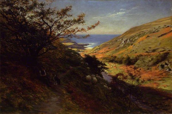 Richard Jack painted this Irish landscape, though we are uncertain when. Born in Sunderland, England, Jack made a name for himself painting military subjects, especially during the First World War, when he served as an official war artist. But this canvas looks to the west, toward the cultural and political situation in Ireland. The painting presents a rural scene, likely dating from the early 20th century, a period of significant political upheaval. At this time, the Irish were fighting for independence from British rule, reflecting a broader movement of anti-colonialism. This landscape, with its muted tones and rugged terrain, evokes a sense of the Irish identity, separate from British dominion. By researching the artist's biography and the historical context of the artwork, we gain a deeper understanding of the social and political issues it addresses. The meaning of this art is contingent on social and institutional context.