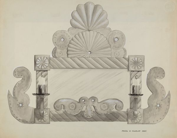 Here, Philip Johnson envisions designs for furniture mounts, capturing a moment in the ongoing dialogue between classical motifs and contemporary forms. The laurel wreath, a dominant symbol, speaks of victory and honor, its roots deeply embedded in ancient Greek and Roman culture. We see echoes of this wreath across time, from the triumphal arches of emperors to the emblems of Renaissance nobility. Consider how the wreath, initially a marker of military and athletic prowess, evolved into a symbol of artistic and intellectual achievement. Like a river, the symbol flows and adapts. This transformation reflects our collective yearning for recognition. Notice also the floral rosette on the caster, a motif that blooms across cultures, representing beauty, cyclical renewal, and spiritual unfolding. It invites us to explore the human tendency to imbue natural forms with layers of symbolic meaning, reflecting our subconscious quest for harmony and connection with the world around us.