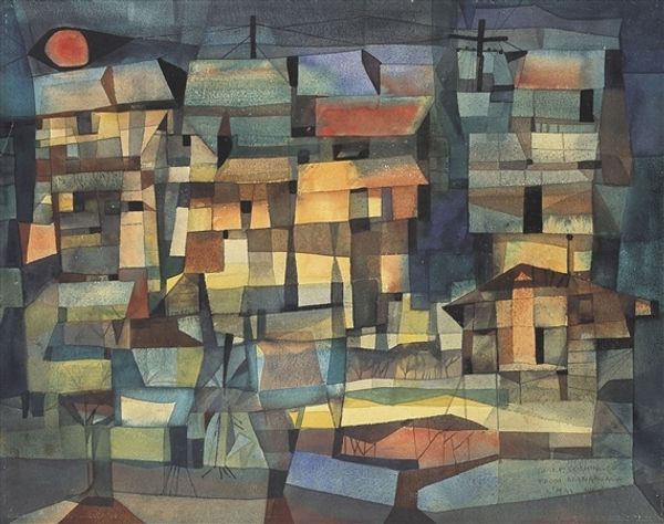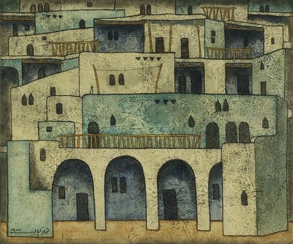 Curator: Petros Malayan's watercolor from 1973, entitled "Old Yerevan, Kond", offers a glimpse into a historic district of the Armenian capital. Editor: Immediately, I'm struck by this overwhelming sense of muted nostalgia. The colors feel like they've aged, like a photograph bleached by the sun, hinting at a place slowly fading from memory. Curator: Precisely. The restricted palette, primarily earth tones and grays, constructs a somewhat melancholic mood. Observe how Malayan utilizes layering and varying tonal values to depict the intricate urban fabric. The architectural forms, primarily dwellings, are tightly packed. Editor: It’s almost claustrophobic, isn't it? The structures seem to press in on each other, like they're huddling together for warmth. I’m particularly drawn to the glimpse of laundry hanging out to dry— such a humble, human detail amidst this imposing cityscape. I see it as this poignant reminder of ordinary life unfolding within these weathered walls. Curator: That interplay of the quotidian and the monumental is skillfully rendered through Malayan’s subtle realism. He does not shy away from portraying the wear and tear on these buildings. It makes a comment on the nature of urban space and change. This quarter, Kond, retains a rich historical significance, which is palpable within the brushstrokes. Editor: I agree, and those details! The crumbling facades, the irregular windows…each imperfect line tells a story. There’s a palpable sense of decay but also resilience, you know? Like a testament to a community that has weathered many storms. For me, the beauty resides in the imperfection itself. Curator: Yes, a deliberate departure from idealizing the urban environment, characteristic of the Soviet Nonconformist art movement that Malayan aligned himself with. He captures the spirit of a place resisting homogeneity. It does so by maintaining its unique identity amidst modernization efforts. Editor: Absolutely. It's less about the bricks and mortar and more about the soul embedded in this neighborhood. I feel like wandering into one of those homes for a cup of strong coffee and stories about generations past. Curator: In observing Malayan’s technique, one could suggest he captures an ephemeral moment in Yerevan’s history by giving the neighborhood a lasting legacy. Editor: It really does capture a feeling. Beyond a documentary piece of a place, he's gifted us a feeling that still resonates today.