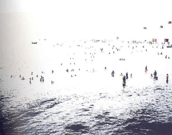 David Burdeny’s photograph, *Snorkeler (After Misrach), Maui, Hawaii,* gives us a wide expanse of the Pacific ocean, a process of gradual shifts in colour and tone. Burdeny isn't splashing around with paint, but he is controlling light and colour in a way that reminds me of Agnes Martin. It’s so meditative, the way the water shimmers from a deep turquoise into a light sandy yellow as it meets the shore. The lone snorkeler is a small dark blot in this wash of colour. Think about the idea of being immersed in a huge expanse and how, in a strange way, it gives the photograph a really intimate feel. The ocean is everything, and the snorkeler is just one small part of it. Like Jeff Wall, Burdeny is interested in how photography can evoke a sense of cinematic scale and stillness. It's not just a snapshot; it's a carefully composed scene that invites us to slow down and contemplate our place in the world.