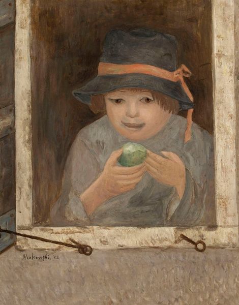 Editor: Here we have George Luks' "Child with a Toy," painted in 1919, location currently unknown. I'm immediately struck by its warmth; the limited palette almost glows. What are your initial thoughts on this portrait? Curator: This piece speaks volumes about the changing social landscape of the early 20th century. Luks, associated with the Ashcan School, often depicted everyday urban life. Does this seem like a typical society portrait to you? Editor: Not at all. It feels much more intimate and real, far from the formal portraits of the wealthy. It almost feels like a social commentary. Curator: Exactly! By choosing a child with an ordinary toy, Luks challenges the conventions of portraiture. The toy itself—likely inexpensive—emphasizes a different social reality than the gilded objects seen in upper-class portraits. Consider the date too - 1919 - this is a post-war image, what statements might Luks be making? Editor: You’re right. Post-war America would definitely be rethinking its values, and a painting like this sort of democratizes portraiture, showing the beauty in everyday life, a kind of post war humanism, in a way. Curator: Precisely. The warm colors also soften any harsh social critique. He's not necessarily condemning, but observing and humanizing a segment of society often overlooked in art. It raises the status of everyday children to art worthy individuals. Do you see Luks’ choice as politically charged or merely socially aware? Editor: I think it's both. Highlighting these realities is inherently political, even if subtly so. The choice of subject and style, combined with the period, transforms the painting from a simple depiction to a wider commentary. It seems to show that art and artists have the capability to promote cultural change. Curator: And this piece certainly made me re-evaluate how art reflects society’s shifting values and what we consider worthy of artistic representation. Editor: Me too! This really underlines the importance of context when we look at any work.
