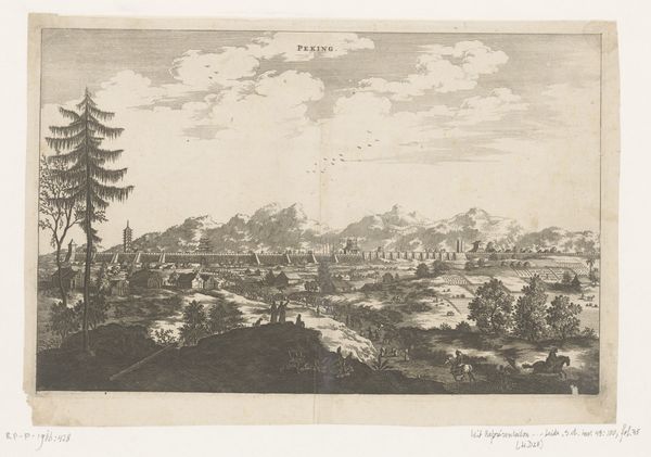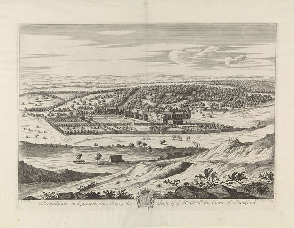 Curator: What a remarkably somber scene. Editor: It is, isn't it? This is an engraving from 1845 by Claude-Félix-Théodore Caruelle d'Aligny, titled "Gezicht op de Cycladen," or "View of the Cyclades." Curator: The ruins in the foreground dominate the view. They’re almost suffocating, as if nature is trying to reclaim the site of a once great civilization. There's a real sense of decline here, a memento mori in stone and ink. Editor: I see it too, but I’m also struck by the formal choices. Look how the artist has created depth. The light and shadow play across the broken columns, leading our eye toward that distant coastline. It's almost mathematically precise. Curator: Perhaps d’Aligny was drawing a parallel. A visual metaphor for the rise and fall of empires, the fleeting nature of human achievement set against the enduring presence of the natural world. Remember that in this era, Romanticism was often entwined with Realism, depicting harsh truths. Editor: But it also elevates ruins, doesn't it? Transforming them into picturesque subjects of contemplation. See the subtle gradations of tone, the almost loving detail in the depiction of fractured forms. Curator: That's the peculiar pull of the romantic era—the allure of ruins symbolizing the loss of classical grandeur, inviting the audience to question their own epoch against that backdrop. It became a symbol of national and political significance throughout Europe. Editor: Well, whatever its deeper meanings, from a purely visual perspective, the artist has achieved a striking balance. The severe geometry of the ruined columns, offset by the wild, scrubby landscape. It draws the eye, invites close looking. Curator: It does make you ponder about history, about what came before and what lasts. Editor: Yes, it’s a powerful combination. Curator: Indeed, the engraving makes us contemplate not just art but its reflection of power. Editor: Yes, the artist makes us aware of beauty as well as time, a rather beautiful elegy for a vanished world.