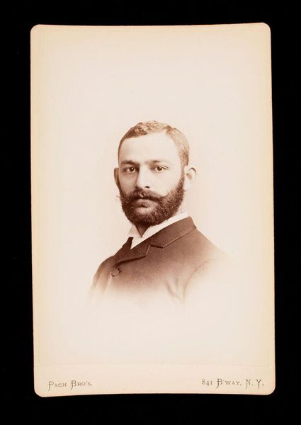 Curator: This is a portrait of Frank William Taussig, captured by Pach Brothers. There's no specific date attached, but Taussig lived from 1859 to 1940. Editor: It evokes a sense of steadfastness, doesn’t it? The oval spectacles and neatly trimmed beard suggest a figure of authority and intellect. Curator: Indeed, the portrait studio, Pach Brothers, was quite prominent in New York, known for capturing influential figures. Editor: Right, and those spectacles act almost as a symbol, a visual marker of wisdom and insight that society associates with intellectualism. Curator: Exactly. It’s interesting how such visual cues can influence our perception, reinforcing cultural archetypes over time. Editor: It does make you wonder about the power dynamics embedded in portraiture and how it shaped public perception of figures like Taussig. Curator: Absolutely, reflecting on the cultural implications of these images allows us to rethink their lasting impact. Editor: It's intriguing to consider the layers of meaning such a seemingly simple portrait holds.