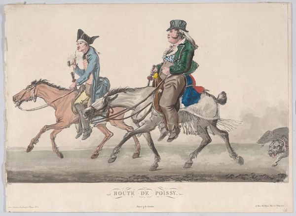 Artist: Well, hello there. We're looking at James Gillray's etching titled “La Promenade en Famille–A Sketch from Life," possibly made around 1797. It’s at the Art Institute of Chicago, but right now, it’s all ours! Art Historian: My goodness, it hits you right away, doesn't it? This sense of satirical exaggeration—a topsy-turvy world. Artist: Precisely! It's a jab at idealized family portraits, skewering societal pretensions with relish. Look how the figures are rendered – all noses and jutting jaws! That pulling figure, perhaps a dad, strained at his work. He's like a beast of burden more than the patriarch, right? Art Historian: The leash-like cords attaching him to the family certainly amplify that reading! And notice the lady, presumably the wife; she reads from what could be a book of etiquette, completely oblivious to the strain on her spouse and the chaos around her. Symbolically, she embodies the frivolous ignorance of the upper class. Artist: Oh, she's buried in a novel, probably! A distraction from the true labor required to maintain their status. But did you notice even the dog and baby in that stroller seem to embody their family dynamic? What do you make of that crown over the stroller? Art Historian: The inclusion of the royal crown is a potent reminder of their ambition! Each detail points toward a family parody of wealth and leisure, highlighting their detachment from any genuine societal contribution, maybe implying something negative about them as well. It is not for no reason that people have said “Uneasy lies the head that wears a crown.” Artist: Yeah, the symbols scream louder than words. Even that signpost to Richmond and Bushy feels like a sly wink – which way are they REALLY going in life? Away from nature and humility, I’d bet! Art Historian: A fascinating piece of commentary! It uses caricature not just to entertain, but to dissect the values of a particular moment in time, reminding us of the enduring power of symbols to communicate cultural anxieties. Artist: Agreed! Gillray was fearless and so much FUN. His art offers a potent lesson: look closer, and maybe laugh at the madness of it all. Thanks for walking the promenade with me! Art Historian: Indeed, a brisk and insightful stroll through a world where appearances are wonderfully, deliberately, deceiving. Until next time!