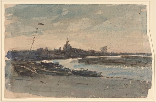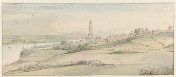 Editor: So, this is “View of a Landscape. In the foreground a country road with a horse-drawn carriage; in the background houses and a church” by Martinus Rørbye, from around 1830 to 1832. It’s a watercolor and pencil drawing. It feels…peaceful, maybe a little melancholic? What do you see in this piece? Curator: Beyond the surface of a tranquil landscape, I see a negotiation of power structures. This seemingly simple scene reflects the socio-economic realities of 19th-century Denmark. Who is being transported in the carriage? Consider their privilege compared to those working the land, walking on it or not visible at all in the rendering. How does Rørbye's perspective, as a member of the Danish Golden Age, influence his portrayal of this society? Are we invited to celebrate or question this social order? Editor: That's a completely different angle than what I was considering. I was just seeing a pretty landscape! Are you suggesting that Romantic landscapes like this always have that subtext? Curator: Not always overtly, but landscape painting during the Romantic period often served to idealize national identity and reinforce existing power dynamics. Think about land ownership, class divisions, the romanticizing – perhaps even erasure – of rural labor. This piece offers us the opportunity to critically examine these elements within the context of Danish history and artistic movements. What stories are left untold in this seemingly picturesque view? Editor: I guess I hadn’t thought about how the lives of everyday people would contrast with this idealized, serene landscape. I see what you mean about the subtext now. Curator: And how those absences speak volumes about who held the power to represent, and who was being represented. Editor: That's really made me rethink how I see landscapes now. Thanks!