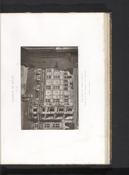 Curator: Here we have Mèdéric Mieusement’s "Gezicht op de Frans I vleugel van het Kasteel van Blois," which translates to "View of the Francis I Wing of the Château de Blois," dating to before 1875. Editor: It has a sort of ghostly elegance. All those intricate window frames... it's a symphony in grey tones, like a faded memory trying to reconstruct itself. Curator: Absolutely, and that sense of temporal distance is heightened by Mieusement's chosen medium: photography. As a print, the image freezes a specific moment and whispers tales of bygone eras and the castle's architectural grandeur, inviting layers of reflection. The image itself appears to have aged gracefully alongside its subject. Editor: Right? The architecture is almost a character itself here. Look at the repetition of those window arches! What would it have been like, do you think, to be within those walls, gazing out at the world in 1875? Did the inhabitants share the same longing, the same contemplative mood we're experiencing now? I think about the meaning of architectural portraits and how one might see this portrait as more of a personal memoir than just the straight-on facade. Curator: That really makes you consider architecture as cultural memory. The Francis I wing, prominently captured, symbolizes the French Renaissance and its ideals, ambition, humanism—perhaps even decadence. Every flourish, every sculptural detail becomes part of a narrative. Even beyond France, the cultural footprint could resonate throughout history by shaping artistic and intellectual movement—how about considering what’s revealed and what's obscured? Editor: Hmm. Yes. What secrets do you think those walls hold? I suppose they become a silent confidant through generations... if only walls could talk... And speaking of hidden things, there is something about how the building's image resides within the printed volume that evokes a sense of secret lore being tucked between the covers of history. Curator: Well, thinking about it has transported me. I shall always picture Mieusement's lens with this haunting visage now echoing across the centuries. Editor: Yes. And me; thinking about all that human experience layered like sedimentary rock, made visible through the camera’s lens and through the hands of a sensitive printmaker, the medium itself reminds us to honor not only past achievements but quiet meditations.