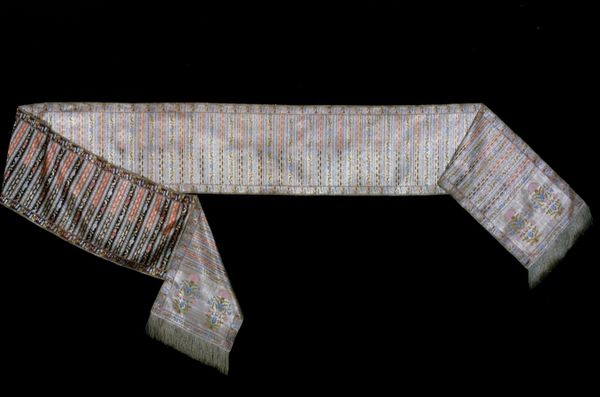 Curator: Here we have a Mud cloth skirt, of unknown date, housed here at the Minneapolis Institute of Art. It seems to be textile based. Editor: My initial feeling is of stark simplicity; those strong, vertical lines create a rhythmic pattern, almost like a musical score. Curator: Let's delve into its materiality. Crafted from cotton and executed through weaving and fiber art techniques, this skirt immediately brings up questions of production. Who spun the cotton? Who wove the cloth? What was the division of labor? It pushes us to consider the craft aspect of so-called “high art”. Editor: I see the geometric divisions created by horizontal lines that interrupt those bold vertical stripes. This instantly evokes the structure of a traditional society or a family tree: ancestors connecting descendants through these visual "lines." How are women in those families represented in this art? It feels like the skirt carries familial hopes or stories. Curator: Precisely. The making process – dyeing, weaving, assembling – these would carry stories, rituals specific to the maker and owner, encoded labor itself. This is more than just clothing. Editor: The fact that this skirt utilizes a form of abstraction also intrigues me. There isn’t a straightforward representation of a figure or animal; rather, those straight and zig-zag lines might symbolically represent traits, stories or hopes for its owner and their place in community. Curator: Agreed, but it's the consumption and ownership that interests me further. Consider the work that is put in here: this piece gains economic significance in a gift economy; who gets access and gets to wear these patterns speaks about how value circulates. Editor: We might never unlock the complete history that lives within this fiber, but this piece lets us appreciate symbols and culture transferred. Curator: True. Viewing this from the ground up shifts our focus to people and processes of production, rather than merely individual artistry. Editor: Indeed. Approaching this skirt with symbology in mind gives us a lens into visual narrative—what stories the imagery has to tell from history into the future.