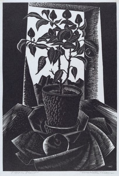 This is Wanda Gág's "Philodendron," a print—so, ink on paper—sometime before 1946. What gets me is how Gág coaxes so much depth from a world of blacks and whites. Look closely, and you can see her process. She builds forms with countless tiny etched lines. The textures feel alive—from the furry shadows to the smooth, reflective pot. Her marks are less about the ‘thing’ itself and more about the mood, the feeling. I notice how the shadow of the plant is almost as present as the plant itself. It is a bit spooky and I like that. There’s a definite echo of German Expressionism here, like maybe Käthe Kollwitz, but Gág brings a uniquely American, and yes, feminine sensibility. A bit gothic. The domestic turned eerie. It’s the kind of image that keeps whispering different stories each time you look.