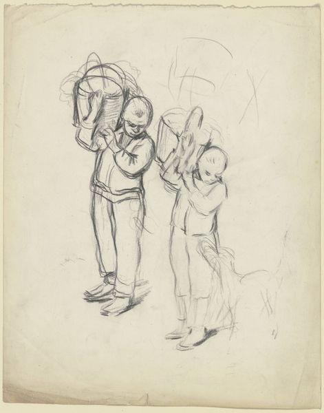 Otto Scholderer sketched this “Boy with Goat” with graphite on paper. In antiquity, the goat was associated with Pan, a symbol of untamed nature and rustic life, and this sketch speaks to a pastoral existence, a theme that has echoed through art history. Consider how often the image of a youth paired with an animal recurs, evoking innocence and a harmonious relationship with nature. We see echoes of this in classical sculptures of young shepherds and Renaissance paintings of cherubic figures with lambs. Yet, the boy’s downcast gaze introduces a melancholic note. The motif of the burdened figure is also worth considering. This pose has roots in ancient depictions of bearers of offerings, yet here, the weight seems less a sacred duty and more a personal burden. It's a poignant reminder of how symbols evolve. Scholderer’s sketch captures a fleeting moment, yet it resonates with timeless themes of youth, burden, and our complex relationship with the natural world.