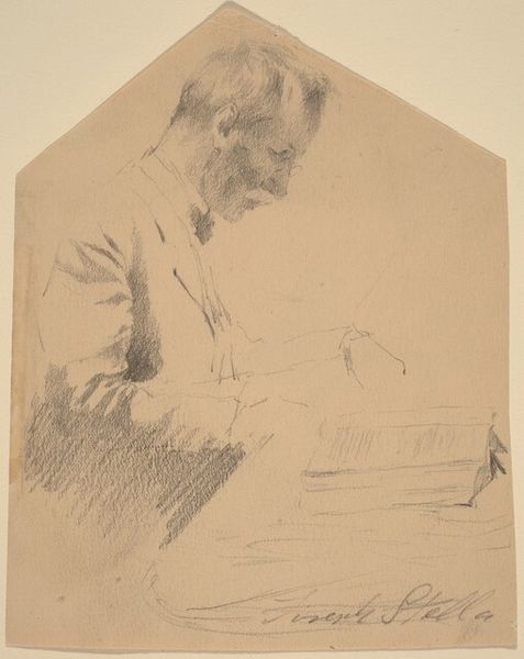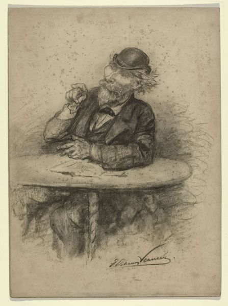 Editor: We’re looking at "Axel Herman Haig III" created in 1884 by Anders Zorn. It's a print, a charcoal and graphite drawing on paper. It has a sort of brooding, intellectual atmosphere, doesn’t it? I’m really interested in how his work was received at the time. What do you see in this piece? Curator: It is fascinating, isn't it? Looking at it historically, this work is intriguing because it portrays an artist—Haig— but through the lens of Zorn, another artist. This intersection highlights the developing public role of the artist in the late 19th century. Note how Haig is depicted absorbed in his work, subtly promoting the ideal of the artist as a dedicated, almost heroic figure. What impression do you get from the way Zorn renders Haig's tools? Editor: They look so precise! Almost staged. Curator: Exactly! It's almost theatrical. Consider the social context of artistic production then: Was it intended for private appreciation or broader dissemination? Also, look at the dark shading and then note what is not shaded, what do you notice? Editor: That Haig’s face is so well lit in contrast with everything around him draws more attention to him? Is that deliberate? Curator: Absolutely. Zorn places Haig as the center of artistic virtue. What are your thoughts on the intended audience? Editor: It’s made me consider who the artist *wanted* to see it and *what* they wanted those viewers to feel about art and its role. Curator: Precisely! By subtly elevating the status of the artist, such works actively shaped the public’s perception, a crucial point when considering the politics of imagery. Editor: I see that more clearly now; it’s less just a portrait, and more about how society views the artist.