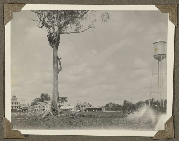 This anonymous photograph of a terrain with buildings captures a simple scene in muted tones. The absence of bright colors focuses our attention on the forms and textures, emphasizing the process of seeing itself. Notice how the varying shades articulate depth and shadow, creating a palpable sense of space. Look closely at the trees in the background, how they create a thick band of dark, dense vertical strokes. This almost seems to push forward against the fading sky, creating a contrast that makes the landscape feel both solid and transient. This piece feels reminiscent of some of the early black and white work of Gerhard Richter, who also explored the subtleties of tone and the ambiguities of representation. Both artists seem to be less concerned with capturing a specific scene than with exploring the nature of perception, questioning what we see and how we see it. It invites us to slow down, to look more closely, and to appreciate the beauty in the everyday.