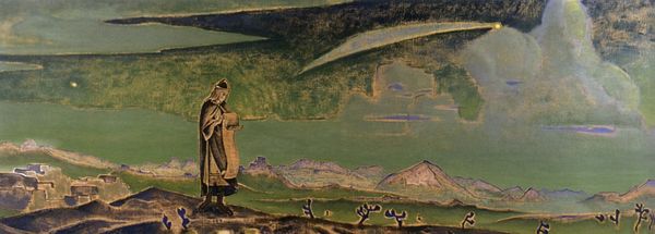 Curator: Meredith Frampton's "Nude with Flying Swans," currently residing at the Tate Collections, immediately strikes me as an allegory about transformation. Editor: Transformation? I'm just thinking about the painstaking process of creating such a textured surface with what appears to be colored pencils. The labor involved must have been immense! Curator: Indeed, but consider the swans: traditionally symbols of grace and purity, yet here one is black, challenging conventional notions of duality and perhaps hinting at a deeper psychological tension. The nude figure, possibly Leda, seems almost to beckon them forth. Editor: Or maybe she's simply enjoying the breeze! The composition is so fascinating, layering landscape with figures. I'm curious about the paper Frampton used and the availability of those pigments in 1919. It speaks to a particular moment of production and consumption. Curator: The image is undeniably compelling in how it weds naturalism with artifice. What do you make of the miniature figures in the landscape? Are they a wedding party, perhaps suggesting a commentary on societal expectations versus the freedom represented by the nude? Editor: Frampton uses such an unusual technique! I appreciate how this seemingly simple image reveals so much when we attend to the materials and the cultural context of its creation. Curator: Precisely. The symbols invite us to consider the enduring power of myth and its intersection with personal narrative.