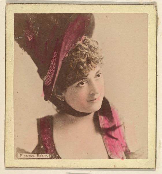 Editor: This is "Actress wearing feathered hat," a promotional print from 1891-1892 by W. Duke, Sons & Co. There’s a nostalgic quality to this piece – almost wistful. What can you tell me about it? Curator: This "trade card" is more than just a pretty picture. Consider the context: late 19th-century America. Tobacco companies were vying for market share. These cards, included in cigarette packs, acted as miniature billboards, normalizing tobacco use while subtly promoting an ideal of femininity and consumerism. Who do you think these cards were targeting? Editor: Men, most likely. Curator: Exactly! These cards often featured actresses, singers, and dancers – women already in the public eye, but also strategically positioned as objects of desire. The feathered hat, the fur – these are symbols of aspirational wealth and status. And the "Honest Long Cut" tagline? That’s a direct appeal to male consumers seeking a reliable product, linking it to the beauty and perceived "honesty" of the woman portrayed. How do you think this "image" might have impacted women of the time? Editor: I imagine there must have been enormous pressure to achieve this idealized look, a standard largely dictated by the male gaze and commercial interests. Curator: Precisely. And beyond the individual level, these images reinforced societal norms, defining acceptable roles for women as performers, consumers, and objects of admiration rather than active agents in business or politics. Think about the power dynamics at play. The actress is both celebrated and commodified, her image used to sell a product, subtly reinforcing existing power structures. Editor: That’s fascinating. I hadn't considered the multiple layers of meaning embedded in such a seemingly simple image. It's more complex than I initially thought. Curator: Exactly! By unpacking these layers, we can better understand how images have historically shaped our perceptions of identity, gender, and power, issues that are still profoundly relevant today.
