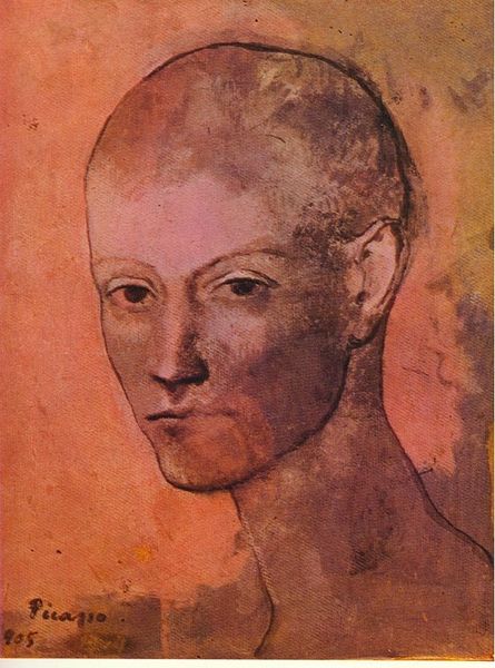 Curator: Before us is a self-portrait by Pablo Picasso, executed in 1906 using oil paint. Editor: My immediate reaction is to its stark simplicity. The palette is muted, almost monochromatic, giving it a rather raw, vulnerable feel. Curator: That's interesting. Historically, 1906 marks a significant turning point in Picasso's career, falling within his so-called "Rose Period" but also anticipating his engagement with Iberian sculpture and, soon after, the development of Cubism. Editor: I see a directness that speaks volumes, even though it lacks flamboyant colours or elaborate details. Look at the unflinching gaze. It almost feels like he's challenging the viewer, confronting them. Given the historical context, it makes me consider masculinity and how Picasso performed that in the early 20th Century, especially as a Spanish expatriate in Paris. Was this image deliberately austere, meant to be read as a declaration of identity? Curator: Precisely. The pared-down aesthetic could be interpreted as a rejection of prevailing academic styles, a move toward a more 'primitive' mode of representation. And let's not forget, there's a lot of debate surrounding cultural appropriation at the time in relation to Picasso’s Primitivism. Editor: The muted tones remind me of clay or earth, tying it to something ancient. Do you think the monochromatic color selection was to emphasize this reference, perhaps tying his artistic identity to his historical one? It's fascinating how the portrait doesn’t just represent a likeness, but an assertion of artistic identity and heritage during a transitional era for him. Curator: Absolutely, it’s like he’s grounding himself, using his heritage as a foundation for the revolutionary path he's about to take. Considering art’s role within increasingly global contexts, a reading that moves through gender, ethnicity and nationhood feels absolutely correct. Editor: It’s a complex work, filled with these types of tensions, made even more interesting through his unique artistic journey. Curator: Indeed, the painting prompts contemplation regarding how personal and collective identity intersects within the realm of artistic expression and evolution.