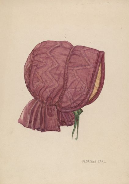 Jean Peszel rendered this hat with watercolor, a medium that lends itself well to capturing the subtleties of fabric and form. Observe the hat’s form, reminiscent of the protective bonnets worn throughout history, echoing in medieval headdresses and even the veils of antiquity. It's fascinating how such a simple object can carry layers of meaning. The bonnet has morphed from a symbol of modesty and protection to one of status. Consider, too, how the hat's color resonates—the color of the natural world, of growth and life. This is a powerful image, tapping into our collective memories and subconscious associations. The hat is both a practical object and a symbol laden with cultural weight.