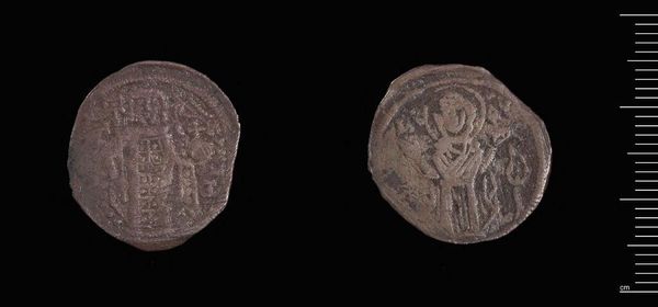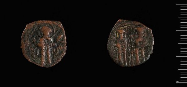 Curator: This is a Grosh of John Asen I of Bulgaria, currently housed at the Harvard Art Museums. Its weight is a mere 1.78 grams. Editor: It’s striking how such a small object embodies immense power, isn’t it? The worn surface speaks volumes about circulation and exchange within its historical context. Curator: Indeed. The material itself, likely silver, would have been a valuable commodity, intrinsically linked to trade routes and resource extraction. We should consider the labor involved in its mining and processing. Editor: Absolutely. And beyond the coin's material value, the imagery—the figures, the symbols—these were potent tools in shaping identity and legitimizing power, particularly within the socio-political landscape of Bulgaria at the time. Who did it represent? Who did it exclude? Curator: Excellent points. Considering its production and use lets us move beyond simple aesthetics to understand it as a complex artifact embedded in social relations. Editor: Ultimately, a tiny object, but massive in its implications for understanding power, value, and representation. Curator: A fascinating glimpse into the material culture and political economy of its time.