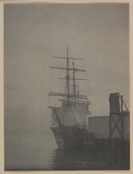 Curator: Here we have Grant Miles Simon's 1940 graphite drawing, "Ships." It offers a somber realism; its delicate linework drawing us into a profound sense of waiting. Editor: My first thought is one of looming impermanence, something hanging in the balance. The colossal scale of the ships presses down on those small figures below, silhouetted on the dock, dwarfed in this gritty, smoky harbor scene. It speaks of a time perhaps on the precipice of change. Curator: Absolutely. Given the date, 1940, this imagery lands in a precarious moment, historically. I think it offers more than just a harbor scene; it serves as an index of the anxieties surrounding global conflict. These ships become silent witnesses to geopolitical tension. The city recedes into darkness. Editor: That darkness feels central to the reading of this piece. Even the mooring cables resemble heavy chains; do you think that these ships and the faceless individuals carry the symbolic weight of confinement, maybe even repressed fears, characteristic of those war years? Curator: The idea of 'repressed fears' definitely resonates here. And perhaps even an evocation of forced migration. I also consider how class and race might further inflect such scenes; these dockworkers are rendered anonymous. The ship then emerges as an intersectional stage on which a mid-century drama plays out. Editor: That reminds me how ships throughout time have carried multifaceted cultural symbolism, haven't they? Representing not just physical journeys but passages across social and psychological realms. Are these ships, in Simon's hand, transformed into modern-day arks? Or are they silent monuments to isolation, burdened by unspoken narratives? Curator: I like that—silent monuments, definitely. What is fascinating for me is the negotiation between realism and those suggestive, symbolic elements. It speaks to both historical specifics and something universally haunting. Editor: It makes one reflect on the era and beyond. Ships, individuals, bound to collective destiny. Even now, this image invites us to confront questions of power, anonymity, and displacement. Curator: It's definitely a disquieting and beautiful piece, urging us to confront those enduring anxieties lurking beneath the surface of our collective consciousness. Editor: Indeed. It reveals a subtle layering of personal and universal stories, where symbols connect us through the shadows of the past.