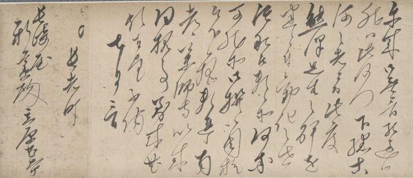 Yokoi Kinkoku created this 'Letter to Matsu Genchō' using ink on paper. Calligraphy, as seen here, transcends mere writing; it is an art form steeped in symbolism, embodying the very spirit and cultural memory of a society. Each stroke carries a weight of intention, reflecting the artist’s inner state and cultural values. Note the dynamic flow, the varying thickness of the lines, the interplay of ink and empty space. This not only conveys textual meaning but also evokes emotion and aesthetic contemplation. Consider how similar calligraphic forms appear in other traditions, like Arabic or Hebrew script, where the sacredness of the word elevates the script to a visual prayer. This act of writing taps into a deep, subconscious connection. The evolution of calligraphic styles through history mirrors the cultural shifts and artistic movements of their times. What began as a practical means of communication transforms into an expressive art form. This piece invites us to reflect on how symbols evolve and retain power, engaging us on a deeply subconscious level and reflecting our collective human experience.