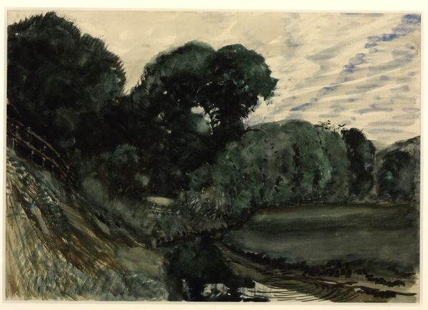Curator: Looking at Paula Modersohn-Becker’s “Gray Landscape with Marsh Channel” from 1899, painted in oils, I’m struck immediately by a somber kind of beauty. It feels like the world holding its breath. Editor: Absolutely, there’s a palpable quiet to it. It feels almost muted, a world stripped bare. For Modersohn-Becker, painting en plein air was about more than just capturing a scene. It was about engaging with the restrictions placed on women at that time and using creativity to respond. Curator: It’s funny you mention that, because while there's so much stillness, I see a radical vulnerability too. The scene is almost deceptively simple, but if you let yourself settle into its quietude, it’s alive. Editor: And the “gray” of the title does so much work here. Beyond the obvious descriptive element, it highlights the limitations imposed by societal structures—perhaps subtly gesturing towards the constraints she and other female artists faced in breaking into a male dominated industry and time period? Curator: Yes, that makes so much sense to me! Maybe the way she's embraced this palette isn't an act of surrender, but resistance, almost like saying, "I don't need bright colors to show you the truth of things, or that it even can or should be simple at all." Editor: The long canal also lends itself to symbolic readings; think about it as a route through tradition. What she might be saying is, can we see these limitations also as portals? How might they change where and who we can become? Curator: Beautifully put. And perhaps, for Modersohn-Becker, that marsh canal wasn't just a landscape, but a place to grapple with the very nature of reality, identity and, by extension, her fight for freedom. It is as if through simplification, one sees more fully and deeply. Editor: Indeed. By confronting the starkness and simplicity of the landscape, the artist prompts us to reflect on our own engagements with spaces, people, the constraints placed upon us, and perhaps it subtly pushes us to reimagine our roles within the social and political arenas we navigate daily. Curator: The painting’s gray might make it look somber but if one allows themselves to linger a while, there is a unique kind of vibrancy held quietly within. Editor: Perhaps, even hope for what it is to become if people actively strive towards equality and social transformation.