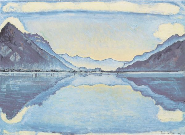 Ferdinand Hodler captured the Stockhornkette mountain range reflecting on Lake Thun with oil on canvas. Here, the mirroring motif serves as a potent symbol, deeply rooted in our collective consciousness. Water, as a reflective surface, has long been interpreted as a gateway to the subconscious, a mirror to the soul. Think of Narcissus, captivated by his reflection, or the ancient myths where water reveals hidden truths. Hodler harnesses this age-old symbolism. The reflection, while visually accurate, blurs the line between reality and illusion, the tangible and the ethereal. The mountain itself, a symbol of steadfastness, is transformed by its watery double, questioning our perception of stability. In this duality, Hodler evokes a sense of psychological depth. It stirs within us the primal recognition of water's reflective properties. This simple act of mirroring becomes a profound statement about perception, truth, and the hidden depths within us all.