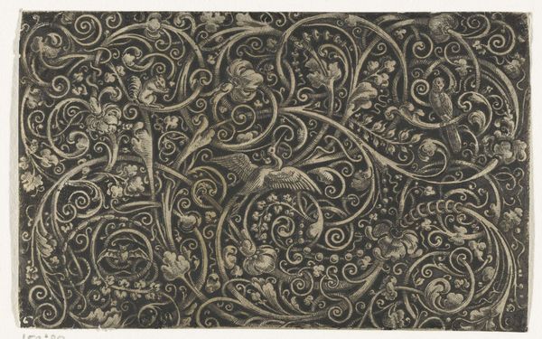 This is “A Double Scroll of Leaf Ornament with a Putto Standing at the Right,” an engraving by Heinrich Aldegrever, a German artist who lived from 1502 to 1561. Aldegrever was among a generation of artists deeply influenced by the Reformation and the Renaissance. Unlike some of his peers, he navigated a path between traditional religious art and the burgeoning humanistic ideals of the time. He was known for his intricate designs, particularly his ornamental prints which were very popular at the time. Here, a putto, a cherubic figure often seen in Renaissance art, stands amidst swirling leaves. The image reflects the era’s fascination with classical antiquity, combined with a more modern, human-centered view. It is a testament to the power of art to blend diverse cultural and intellectual currents. Notice how the innocence of the putto contrasts with the dense, almost overwhelming foliage, mirroring the tension between the sacred and the secular. A tension that defined Aldegrever's world.