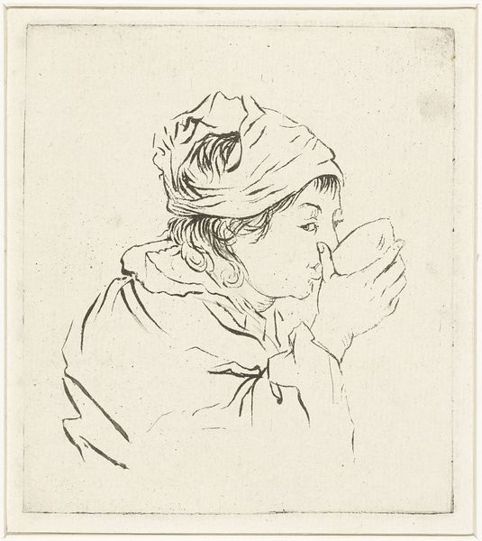 Editor: This is "Studie einer sich umwendenden Frau," or "Study of a Woman Turning Around," by Nicolas Lancret, from before 1730. It’s a chalk drawing on paper, and it feels very immediate and intimate, like a fleeting moment captured. What strikes you most about this piece? Curator: I'm particularly drawn to the way Lancret utilizes red chalk and pastel. The materiality itself speaks volumes about the Rococo period's fascination with texture and surface. Note how the chalk almost blends into the paper. It denies a separation of art and ground, and in a way, makes them the same material. Editor: It’s interesting you focus on the materials. How does that connect with its historical context? Curator: Think about the social context in which Lancret was working. Pastel and chalk, while seemingly delicate, were readily accessible materials. This accessibility contrasts with the aristocratic subjects he often depicted. The very act of using such materials to portray these subjects raises questions about labor and consumption during the period. It makes one wonder about the value systems operating, about who had the access and leisure to produce and enjoy these sorts of sketches. Do you see anything similar in the rapid execution? Editor: Yes, the sketchiness seems to almost democratize the portrait, even if it’s of an aristocratic woman. Curator: Exactly! It brings her down to Earth, humanizes her, and allows the viewer to focus less on the ostentation of wealth and more on the artistic process itself, the labor of creating an image. What do you make of the clothing indicated in this artwork? Editor: I hadn’t really considered that. Now that you point it out, it feels like there's a tension between the implied luxury and the rough, suggestive lines. It seems to be hinting at something… Curator: Precisely. The means of production, the very making of this artwork, challenges traditional boundaries between high art and the everyday. Editor: This has totally shifted my perspective! I was initially focused on the aesthetic quality, but I see now how much the materials and process reveal about the social fabric of the time. Thanks for this in-depth materialist approach!