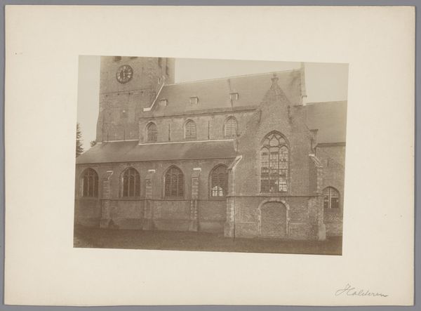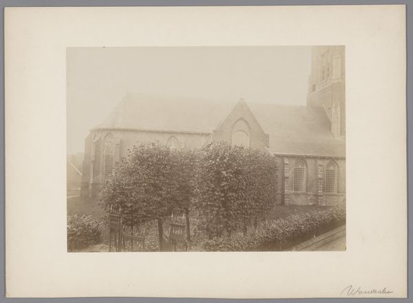 Editor: Here we have an image from 1902, titled 'Noordzijde van de Dorpskerk te Poortugaal', showing the north side of a village church in Poortugaal. It's a monochromatic photograph. I'm struck by how much the photograph itself communicates a sense of age, and of a solemn past. What historical context might be relevant to understanding this image? Curator: That's a perceptive observation. Consider that images of religious buildings, even relatively straightforward ones like this, serve as affirmations of community identity and continuity. A photograph taken in 1902 captures the building at a time of shifting social structures and anxieties. Photography at this time became an important tool for historical documentation and national self-representation. Who was the image intended for, and how would they use it? These are essential questions. Editor: So, you are suggesting that in addition to its artistic qualities, we should see it as a deliberate form of record-keeping or perhaps even propaganda? Curator: Precisely. The image could function as a form of cultural preservation, emphasizing a particular idealized vision of rural Dutch life, reinforcing religious or local traditions, at a time of rapid urbanization and secularization. I'm also wondering if the photograph was taken for the Dutch national agency for the care of monuments that started taking photographs to document national heritage. Think of how these images circulate, and who has access to them. Editor: It is fascinating how this relatively simple photograph opens up so many questions about society at the time! Now I'm wondering about the power dynamics at play in defining what gets preserved and how. Curator: Indeed! It invites us to reflect on who shapes the narrative of cultural heritage. Editor: Thank you. Thinking about who controls the image, and for what purpose, gives me so much to consider! Curator: My pleasure. Remember, art always exists within, and reflects, broader social forces.