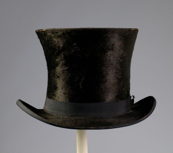 Editor: Here we have a photograph of an Amazonehoed van zwart vilt, or Amazon hat of black felt, created around 1890 to 1900 by Fa. Frans Pauwels. It has such a simple presence... stark even. What do you see in this piece, what story does it try to tell? Curator: It whispers stories, doesn't it? A relic of a bygone era. Think about it – this hat likely sat upon the head of a woman navigating a world actively trying to constrict her. I imagine her confidence, her poise. The simple elegance fights against the expectations placed on women at that time, it both conforms and resists at once. What do you make of the contrast in tones, the shadow play? Editor: I find it compelling. The starkness really does set it apart from the detailed studio portraits I am used to seeing from that period. It feels… modern, somehow. Curator: Exactly! Still-life photography wasn’t just about pretty arrangements, you see? Think of its conceptual weight, this carefully posed object speaking volumes. What’s captured by a simple hat – potential, expectation, self-assertion. Imagine if we only had images of hats from this era to tell us about the time. Would we have different stories about people, place and events? Editor: So much comes through even a simple item. I hadn't considered how much an image of a still object could carry so much emotional and cultural information. Curator: Indeed. It's a powerful reminder that even the quietest objects can scream volumes about identity and societal norms when frozen in time. Now when I pass people on the streets wearing hats, I'll consider what their hats are expressing to others and themselves. What will you think of now? Editor: Now I know a hat can tell a novel! Thanks.