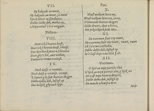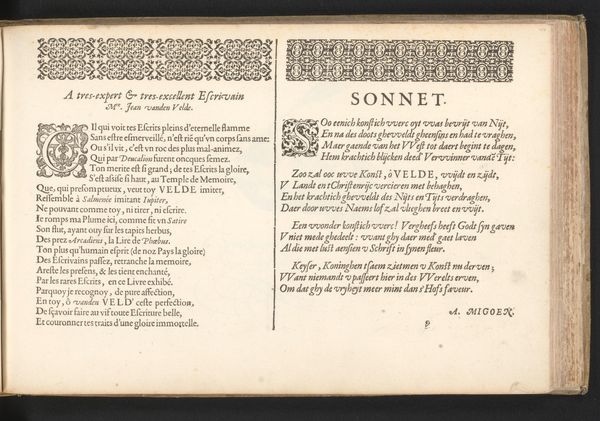 This is a page from ‘Vier Franstalige drempeldichten’, a book of poems in French, likely printed in the Netherlands. Focusing on the material qualities of this page, it is clear that the production process was based on principles of mechanical reproduction, where a printing press was used to apply ink to paper. The uniformity of the letters, the evenness of the lines, and the repetition of the printed elements are all testament to this. The paper itself, likely made from rags, would have been a valuable commodity. The act of printing these poems democratized them, making them available to a wider audience than if they were handwritten. Yet it also speaks to a highly literate society, and to an economy capable of producing the required paper and ink. The very existence of this book, therefore, offers a window onto the economic and social conditions of its time. It reminds us that all artworks, even the most seemingly simple, are products of their context.