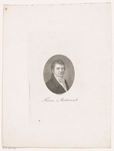 Editor: Here we have an engraving from between 1803 and 1841 entitled "Portret van een onbekende man," or "Portrait of an Unknown Man." I'm immediately struck by the circular frame and the man’s intense gaze. What can you tell us about its composition and style? Curator: Well, if we consider only what is present—the image itself—the composition is rigorously formal. Notice the precise, almost geometric structure of the face, juxtaposed with the soft gradation of shading achieved by the engraving. How do you read the effect of the black and white medium on the visual dynamics? Editor: I see how the limited palette puts more emphasis on the forms. There’s a stillness, almost like a sculpture, due to the shading but also the smooth skin. It looks idealised. Curator: Precisely. The engraver demonstrates mastery in controlling light through incredibly fine lines, generating form. Consider also the clear line that defines the edge of the portrait, contained in a circle. A basic form with a contained figure—is this suggestive to you of any broader theoretical frameworks in artistic thought? Editor: Maybe the controlled precision is something to do with academic art? It looks very deliberate, like the artist wanted everything to look as neat as possible. Curator: You have noticed how the form communicates that stylistic alignment, well observed. Consider how these technical elements communicate the artistic ideology of the time and create this portrait's presence and, if you like, power. What new understanding do you have regarding how line, light and the arrangement affect your overall reading of the artwork? Editor: Seeing it broken down like this made me realise the degree of control and precision that was required in this period. Thanks for your comments; I see this artwork quite differently now. Curator: Indeed, attending to the fundamental elements and their interplay reveals that technical skill can be deployed to project ideas about clarity and order. It certainly enriched my own reflection as well.
