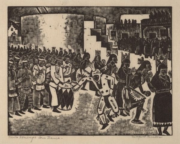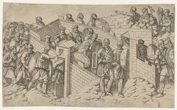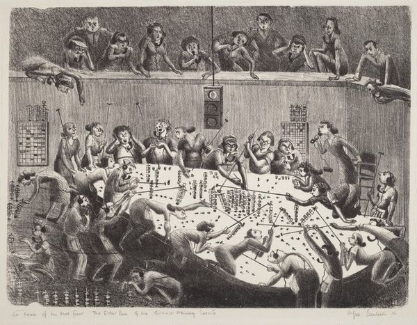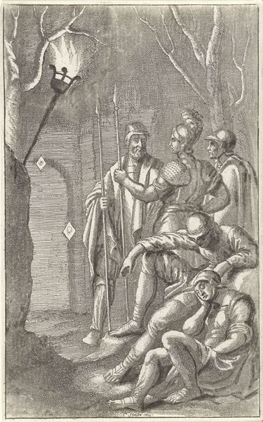 Editor: This etching from 1899, titled "Man die een babylijk uit een gracht haalt" - "Man retrieving a baby's body from a canal" - by Richard Nicolaüs Roland Holst, is incredibly stark. The way the figures huddle together to witness this tragic event…it's heavy. What sociopolitical commentary do you think Holst is trying to convey with this grim scene? Curator: Indeed, the weight of the scene is palpable. Holst, deeply involved in socialist circles, frequently addressed themes of social inequality in his art. The symbolic resonance here lies in questioning societal structures of the time, and systems that lead to infant mortality and potentially infanticide amid conditions of poverty and neglect. Do you notice the expressions of the onlookers? Editor: Yes, their faces seem devoid of empathy; almost voyeuristic. It definitely hints at social commentary. Do you think Holst is also addressing class differences with the use of Symbolism? Curator: Absolutely. The artist uses Symbolism to transcend literal representation. Think about the canal itself – often a site associated with the lower classes. Is the canal then a metaphor for societal neglect? How does it contrast with what might be happening in wealthier areas of the city? Editor: That makes sense. It becomes less about a single event, and more about broader social issues concerning marginalized communities at that time. What’s also striking is how this image continues to resonate today, particularly concerning systemic inequalities. Curator: Precisely. By drawing on social realism, he’s inviting a critique of the socioeconomic circumstances of the period, urging viewers to consider what responsibilities society had, or continues to have, toward its most vulnerable members. This piece highlights art’s enduring capacity to provoke necessary, yet difficult, conversations. Editor: It’s remarkable to consider how Holst combined social commentary and symbolism in this piece, pushing beyond mere depiction to confront uncomfortable truths about societal inequalities. Curator: Absolutely. The starkness and intensity forces a reckoning with societal responsibilities – both then and now.