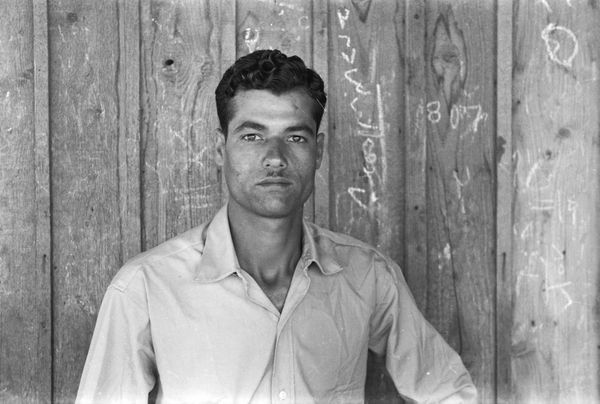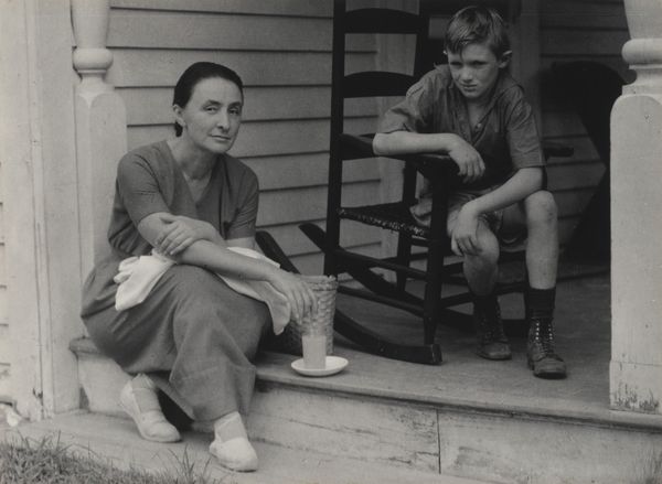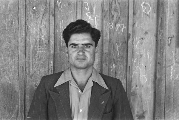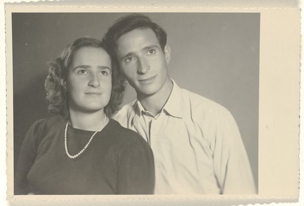 Curator: Before us, we have Paul Strand's 1953 photograph, "The Affianced, Luzzara, Italy," a gelatin-silver print. Editor: My first impression is somber. They both look determined but almost burdened. Is that the weight of tradition, maybe? Curator: Quite possibly. Strand positioned himself as a social realist, particularly focusing on marginalized communities. In this work, the setting, Luzzara, Italy, plays a vital role. It was a region known for its agricultural struggles, and in the 1950s, still reeling from the impacts of World War II. These aren't just any subjects; they’re embedded in very specific hardships. Editor: The wall, the rough timber behind the woman – these are visual symbols of a hard-won existence, the backdrop a metaphor. Their clothing is modest, unadorned. No overt status symbols, but their expressions project resilience. Look at their eyes! There is a steely, melancholic strength in their gaze. Curator: It makes me consider their individual agency within these predetermined structures. How much choice did they genuinely have? These rural communities were often deeply patriarchal. Her gaze challenges any simplistic notion of victimhood, though. Editor: I agree. The black and white adds a timeless, almost archetypal dimension. It strips away distractions and allows us to focus on the universal themes – duty, responsibility, maybe even unspoken love forged through shared adversity. And notice how they’re posed but not touching, almost as if Strand captures their individuality more than their union. Curator: I think that is insightful, actually. Strand isn’t necessarily romanticizing this affianced pair. Instead, he offers us a poignant, complex portrayal of a societal bond within the restrictions imposed by a community's economic and social realities. It leaves you wondering what the future held for them. Editor: Definitely. These aren't just two faces, these are symbols that continue to echo the narratives of endurance and hope for the future across generations and diverse societies. Curator: It's a stark but beautiful piece that compels us to really reflect on the human condition and resilience and resistance in the face of social constraints.