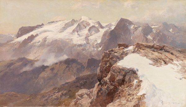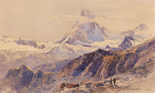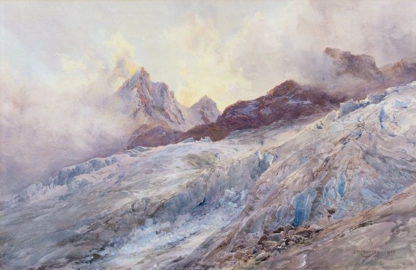 Edward Theodore Compton painted this watercolor of "Ödenwinklkees with the Johannisberg" during a time when the Alps were being heavily romanticized. The image creates meaning through the visual codes of sublime landscape painting, a genre that invited viewers to contemplate the power of nature. Compton was German-English, and his work often catered to British tourists eager to experience the majesty of the continent. The Alps, with their dramatic peaks and glaciers, became symbols of the untamed wilderness, even as they were being reshaped by the burgeoning tourist industry. The figures on the path remind us of the growing popularity of mountaineering. To understand this work better, we can research the history of tourism in the Alps, the development of mountaineering as a sport, and the artistic conventions of landscape painting in the late 19th century. These resources help us see how Compton’s art was both a reflection of and a contributor to the cultural values of his time.