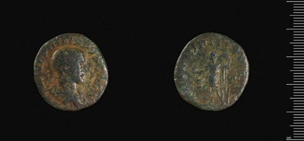 Editor: Here we have an intriguing artifact, the Coin of Eusebeia-Caesarea by Antoninus Pius. The material's patina speaks volumes. What can you tell us about the labor and context behind this piece? Curator: Consider the means of production, the labor of the minters, the availability of metals, and the economy that supported its distribution. How does this small object reflect the vast Roman Empire’s systems of production and consumption? Editor: So, the coin itself becomes evidence of that economy? Curator: Exactly. It represents more than just its face value, doesn't it? Editor: It gives a whole new appreciation for the role of art. Curator: Indeed!