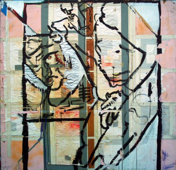 Editor: So, here we have *Sleeping Man*, a stencil piece – it looks like spray paint on brick – by Blek le Rat. The pose of the figure is very classical, but the gritty medium brings it crashing back to earth. What do you see here? Curator: Well, it makes me think about visibility, or perhaps invisibility. Someone sleeping rough, rendered with such graphic immediacy, is literally 'on the street,' yet so easily overlooked. It’s as though Blek le Rat is forcing us to confront a reality we'd rather ignore. The floating rat, is it an alter ego? Or simply highlighting the urban landscape? Editor: That tension between classical and contemporary is fascinating. The sleeping figure is timeless, almost beautiful, but the rat… it’s a jarring reminder of urban decay. What’s with that rat? Curator: Indeed! And this rat makes me smile - Blek le Rat almost certainly chose his nom de guerre as a pun, or a 'tip of the hat', towards the older and better-known New York graffiti artist Keith Haring! I bet Haring would love to be remembered this way! Don’t you think there’s a touch of ironic tenderness here? This rat is a knowing wink towards other street art pranksters! But getting back to the artwork: do you think it challenges traditional notions of art and its place in society? Editor: Absolutely. It takes art out of the gallery and puts it… well, wherever someone might sleep on the street. It demands a reaction. It *is* the people's art. I find myself appreciating how something so simple in its execution can provoke such thought. Curator: Exactly. It's rough, it's raw, but undeniably thought-provoking. Next time you pass someone sleeping rough, maybe you won’t just walk on by… and isn't that art doing what it does best?