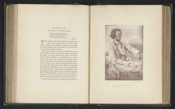 This photogravure of Alfred Tennyson was made by Julia Margaret Cameron, a British photographer known for her portraits of prominent figures, and its printing represents a fascinating intersection of art and industry. Photogravure is a printing process where an image is photographically transferred to a metal plate, which is then etched and used to create prints. The depth of the etching determines the amount of ink the plate holds, allowing for rich tonal variations in the final print. Cameron's artistic vision, combined with the technical expertise of the printer, resulted in images with a unique aesthetic quality, somewhere between photography and etching. The photogravure process, while requiring skilled labor, allowed for the reproduction of Cameron’s photographs on a larger scale, making her work more accessible. This raises interesting questions about the relationship between art, reproduction, and audience in the late 19th century. Consider the material qualities of this image. It's not just a photograph, but an object made through a complex industrial process that straddles art and craft.